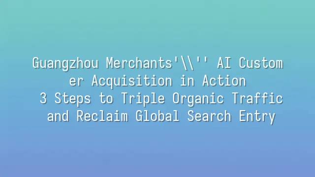 Guangzhou Merchants' AI Customer Acquisition in Action: 3 Steps to Triple Organic Traffic and Reclaim Global Search Entry
