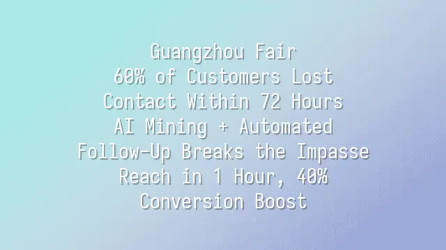 Guangzhou Fair: 60% of Customers Lost Contact Within 72 Hours? AI Mining + Automated Follow-Up Breaks the Impasse: Reach in 1 Hour, 40% Conversion Boost