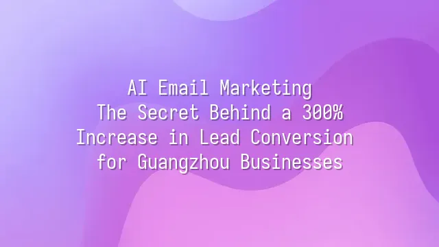 AI Email Marketing: The Secret Behind a 300% Increase in Lead Conversion for Guangzhou Businesses