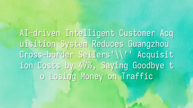 AI-driven Intelligent Customer Acquisition System Reduces Guangzhou Cross-border Sellers' Acquisition Costs by 47%, Saying Goodbye to Losing Money on Traffic