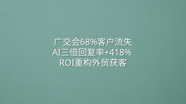 每年广交会结束后,超过68%的客户线索在30天内流失。而AI正以三倍回复率、418% ROI的速度重构外贸获客规则——你还在手动发邮件?
