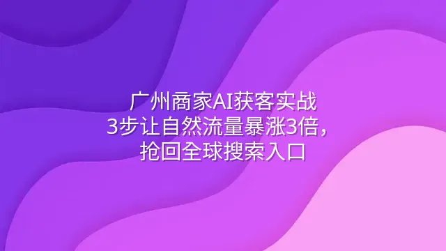 广州商家AI获客实战:3步让自然流量暴涨3倍,抢回全球搜索入口