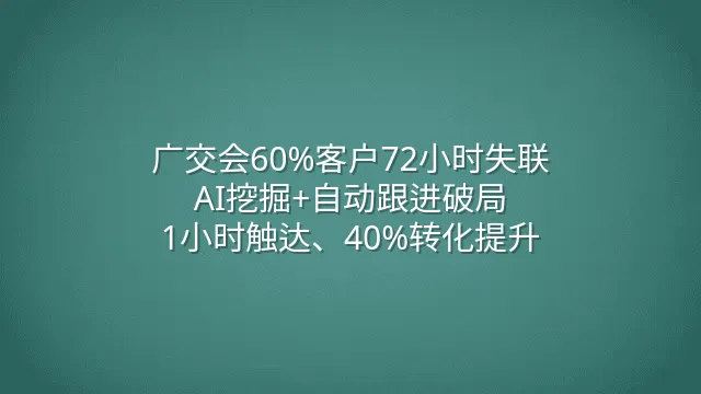 广交会60%客户72小时失联?AI挖掘+自动跟进破局:1小时触达、40%转化提升